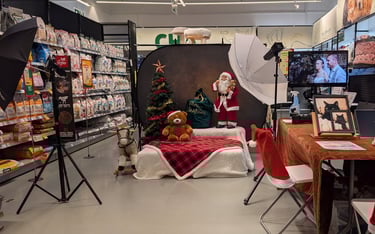 On apporte notre éclairage, nos fonds et notre expertise pour transformer un petit coin de votre boutique en studio de mode pour enfants ou en plateau shooting pour animaux. 📸